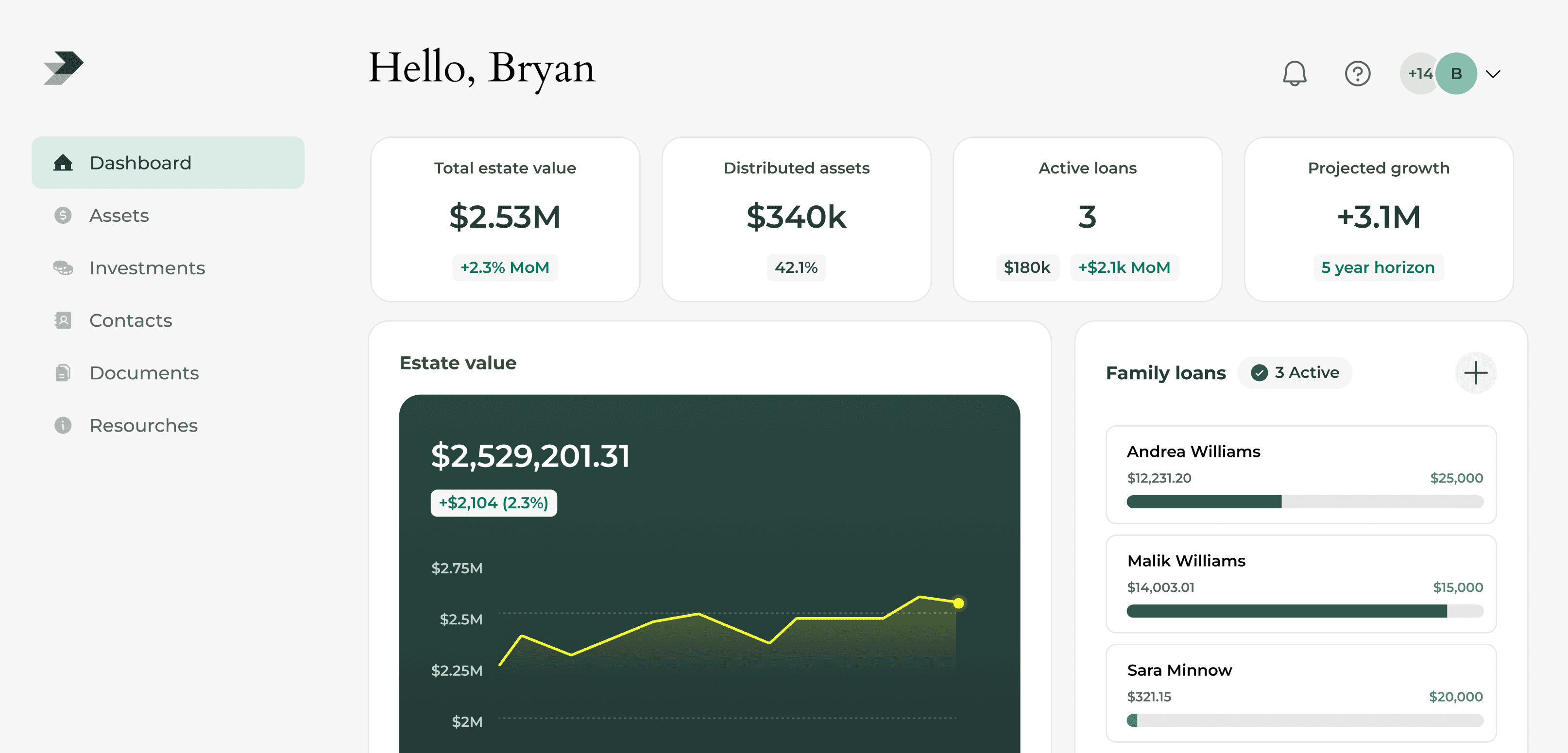 A modern inheritance hub for tracking home equity, assets, family access, and financial opportunities.